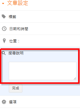 選擇儲存變更後,回到發文介面時就會看到左邊多了一個「搜尋說明」可以輸入